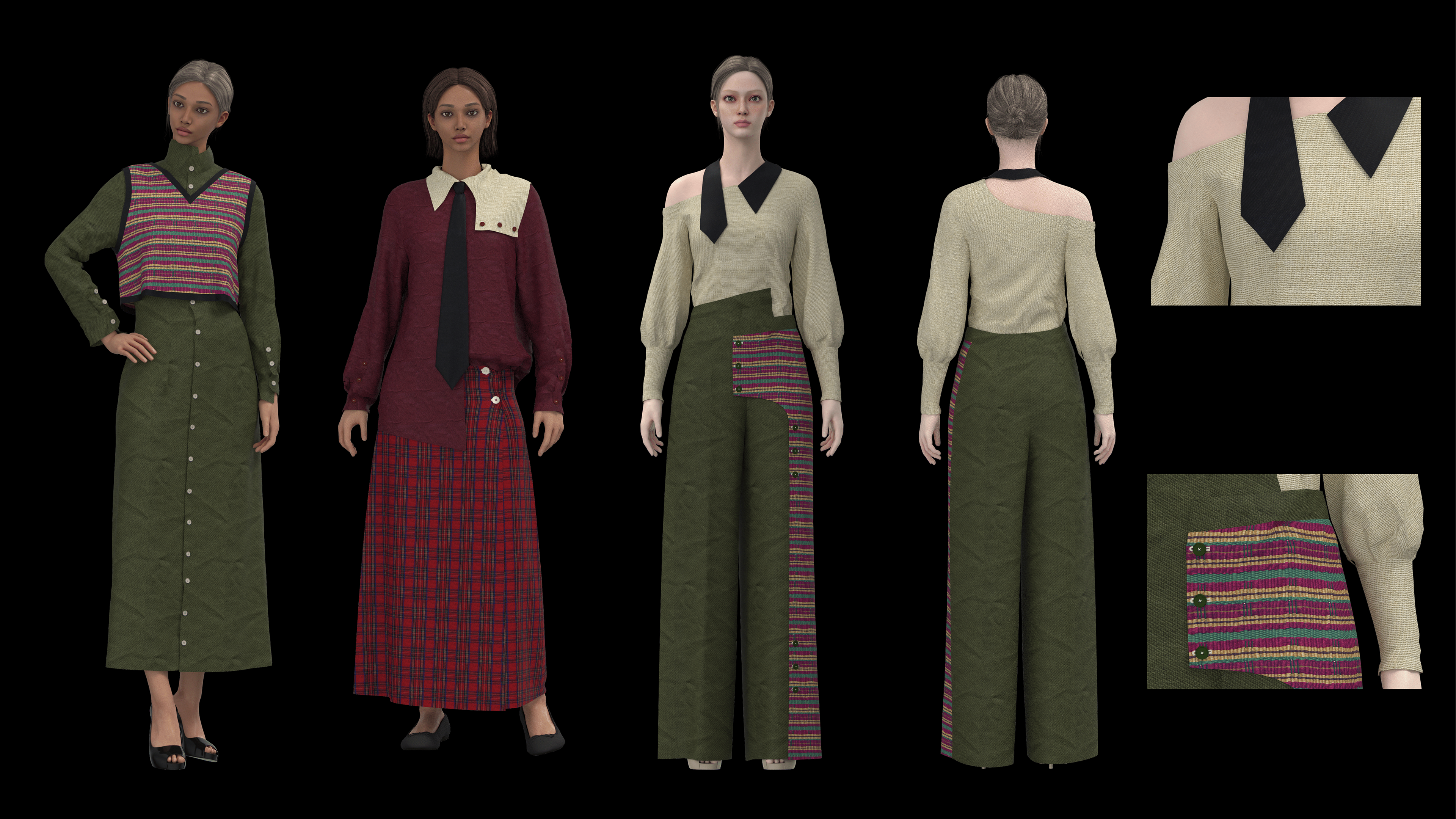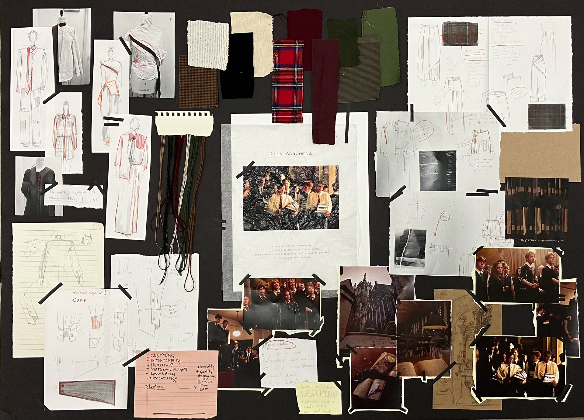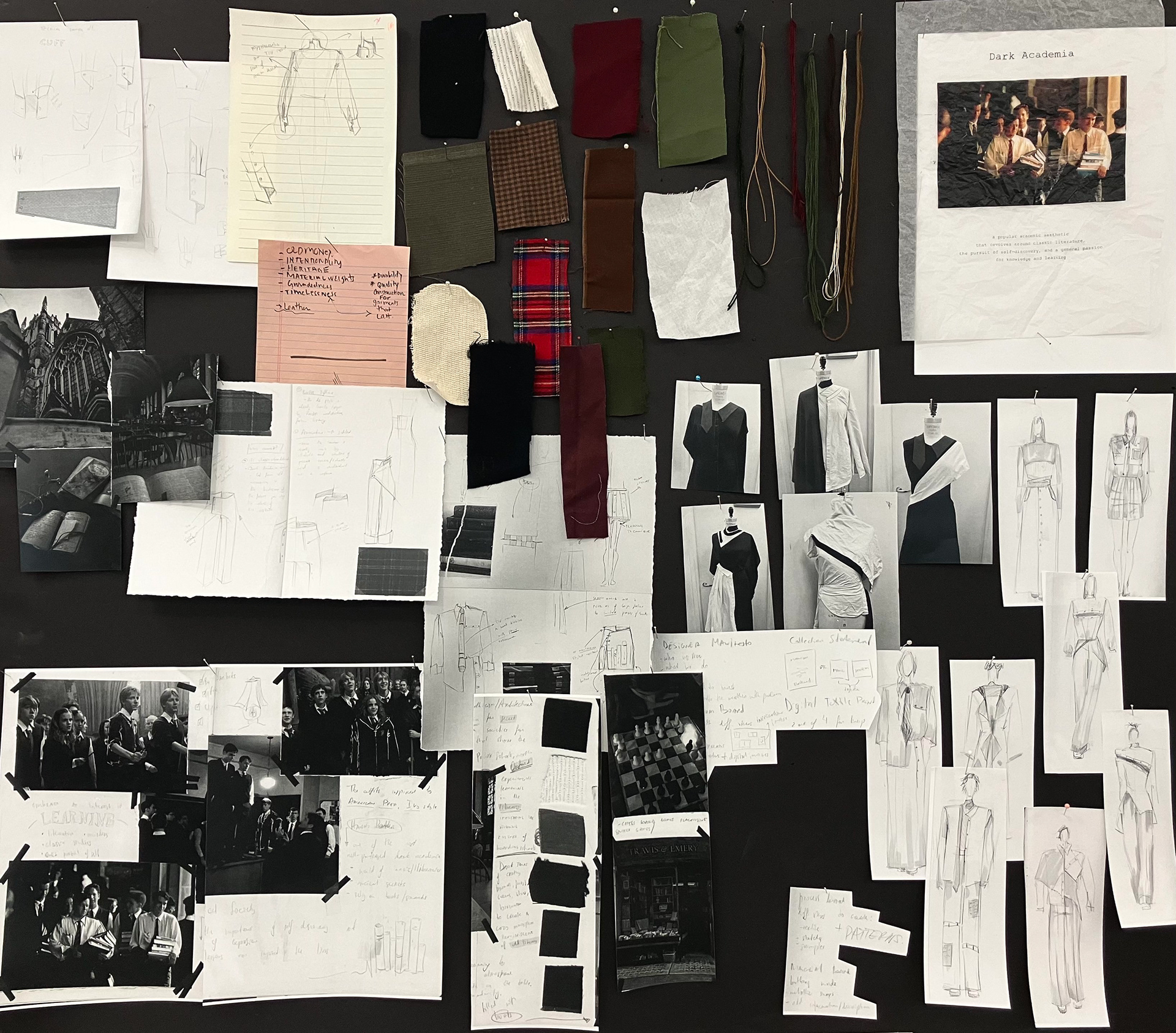 This collection is the materiality of the experience you get by being in the state of deep learning. Each garment is a representation of the colors and textures that people in Dark Academia surround themselves with to perceive education as a privilege and learning as a way of life.